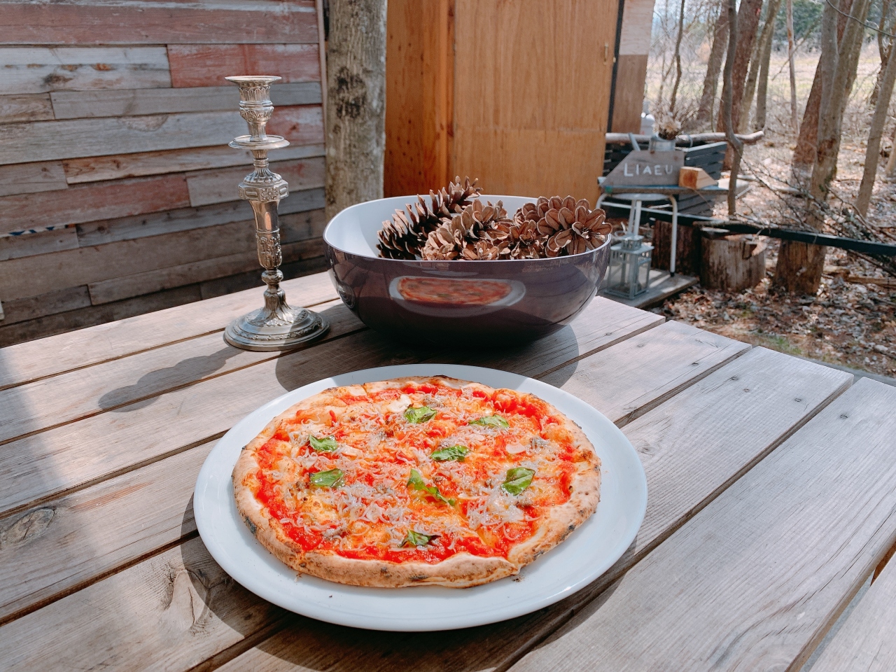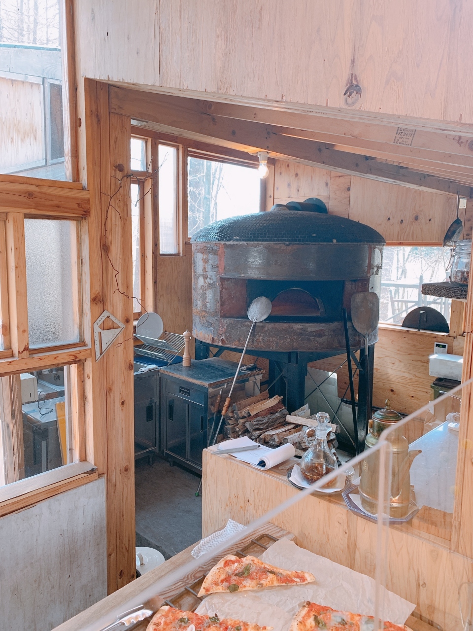 おしゃれで素敵な小屋の奥に大きなピザ窯がどーん!