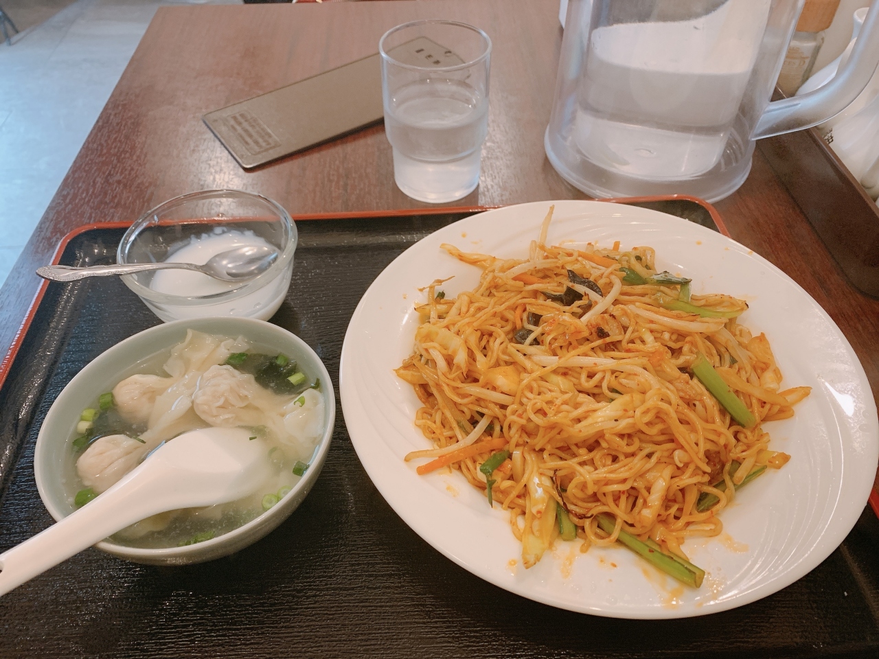 今回は四川風焼きそばのワンタンスープセット930円を注文