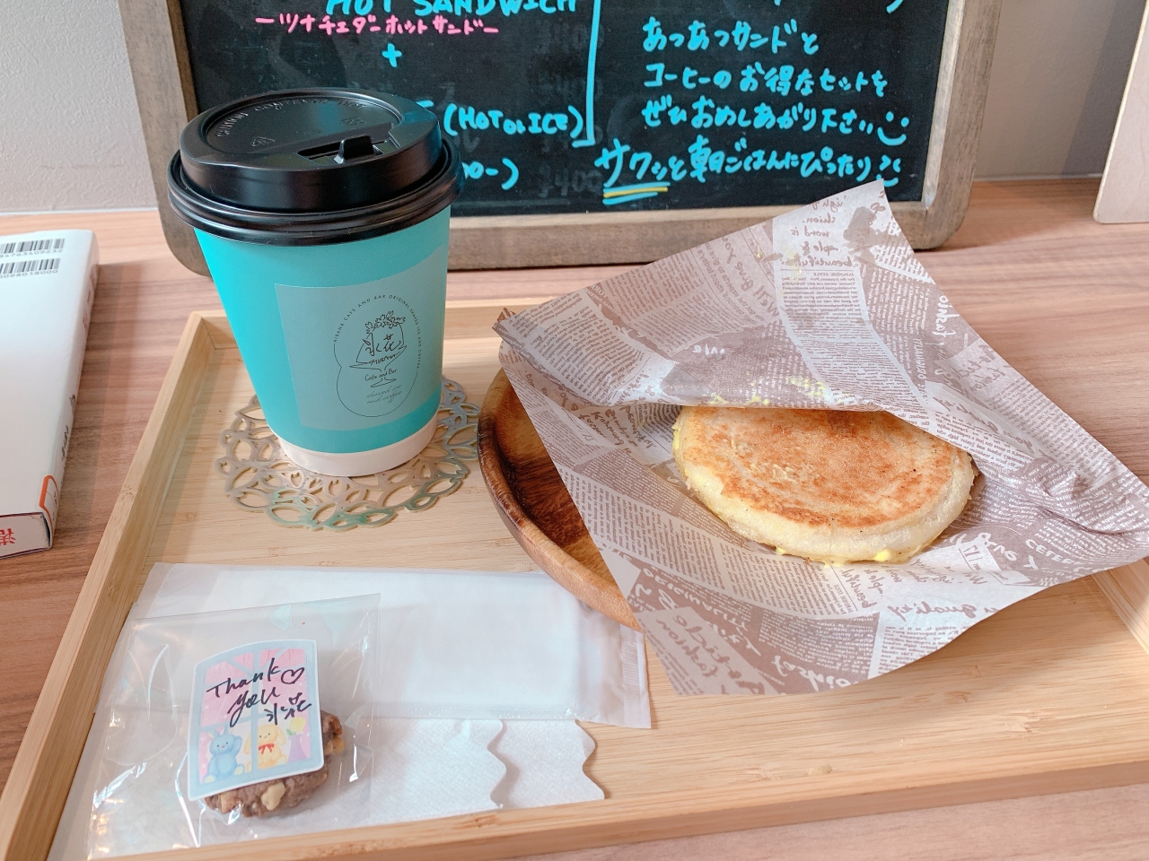 ツナサンドは小さく薄いので軽食程度のボリュームです、おまけに小さなクッキーがあり嬉しかったです