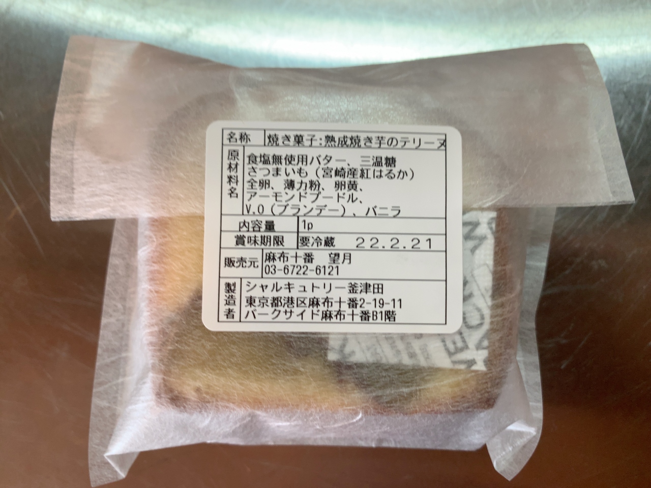 今回は熟成焼き芋のテリーヌ1個800円を2つ持ち帰り。袋は有料です