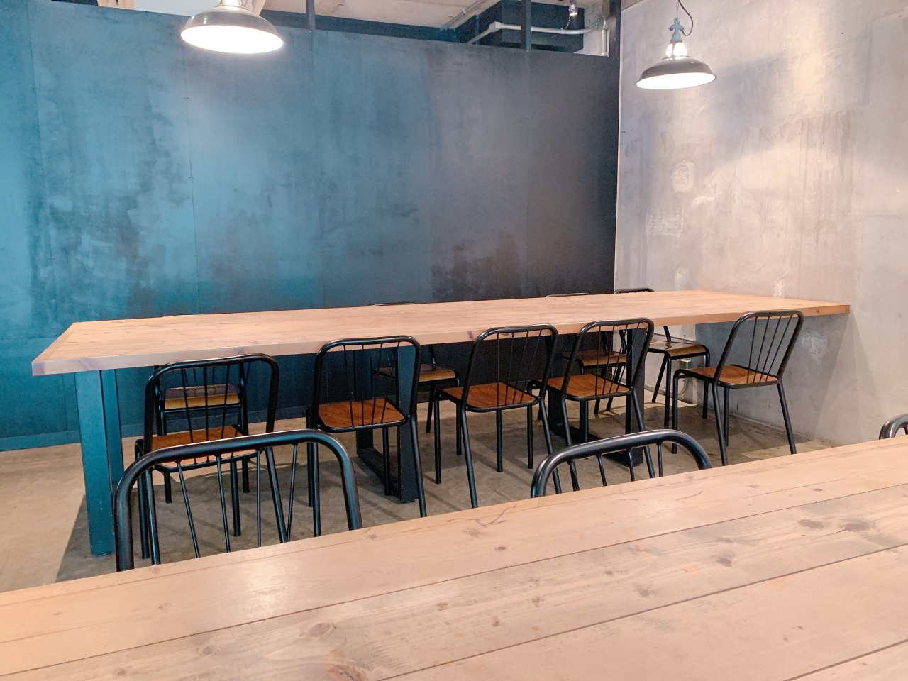 テーブルや椅子はクリスプサラダワークス時代のものがそのまま残っています。