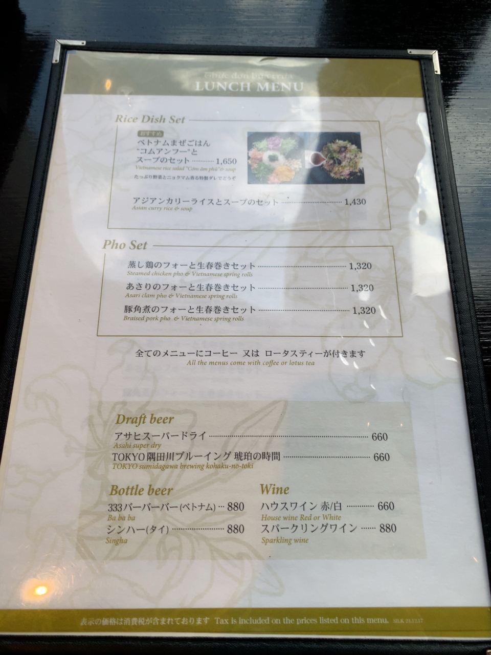 ランチはアジアンカレーとスープのセット、ベトナム混ぜご飯「コムアンフー」、他にフォーのメニューが3種類ほどあります。