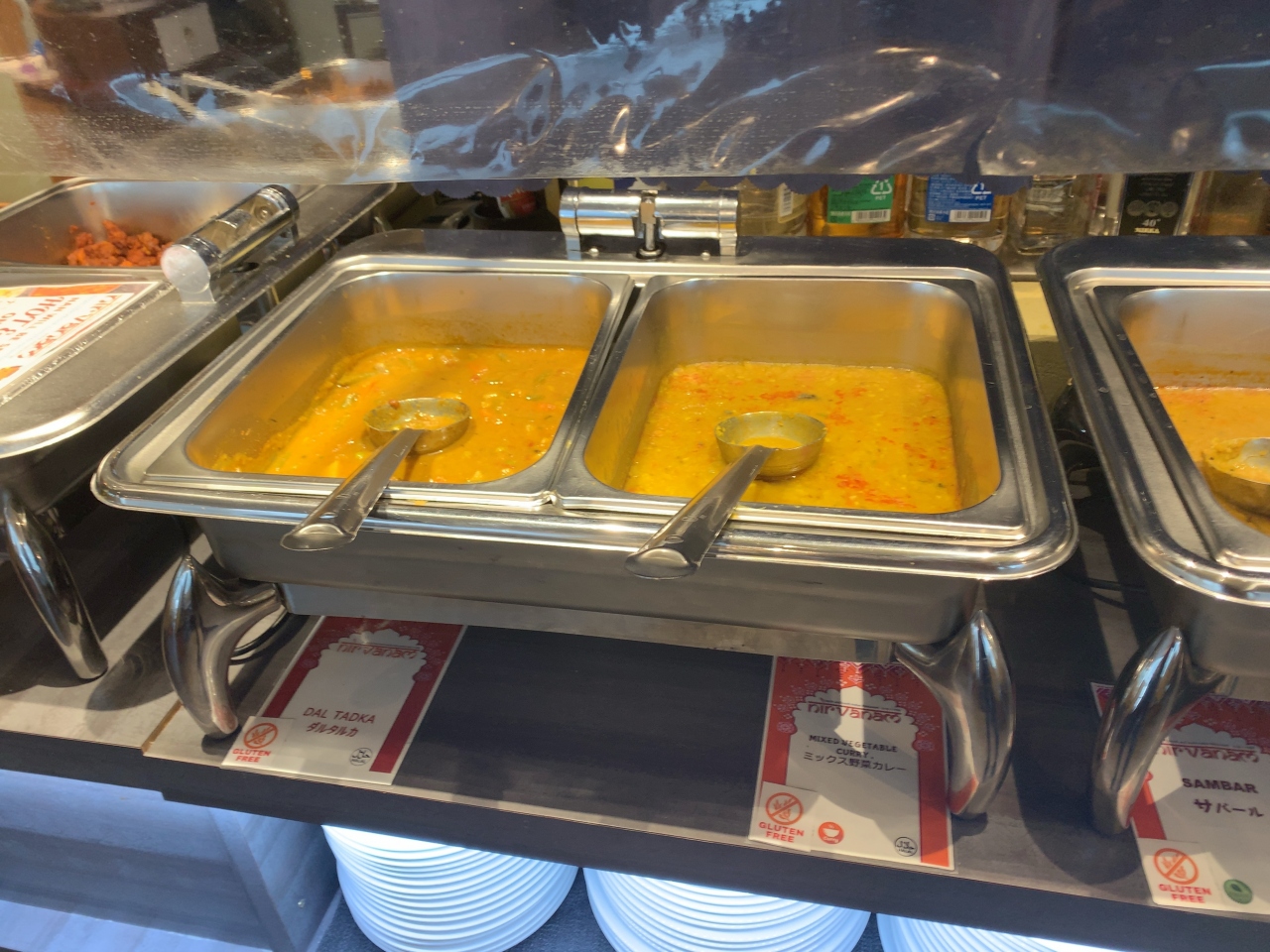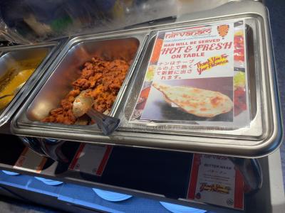 店内にビュッフェのカレーが何種類も並べられてあり、サラダなどのおかずも数種類あります