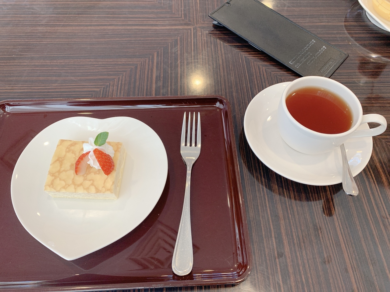 今回はミルクレープとセットの紅茶1,050円を注文