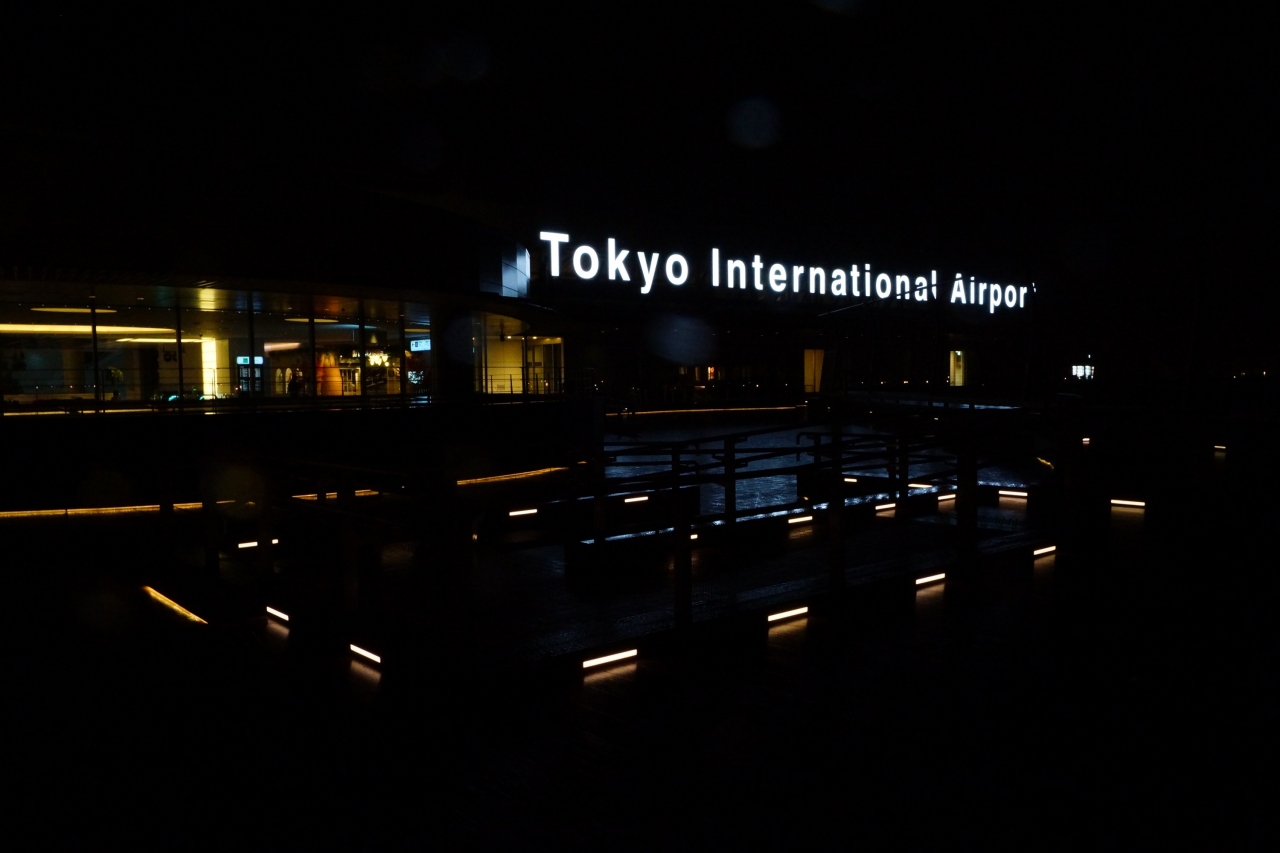 羽田空港国際線ターミナルの展望デッキです。目の前にはA滑走路が見えます。夜になると、段差のあるところに照明がついて、これも綺麗です。深夜になるとほとんど人がいなくなりました。コンビニで買ったものをここで食べるのもいいかと思います。