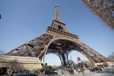 ホテルの前をバス停から来て右に曲がるとエッフェル塔が見えます。
