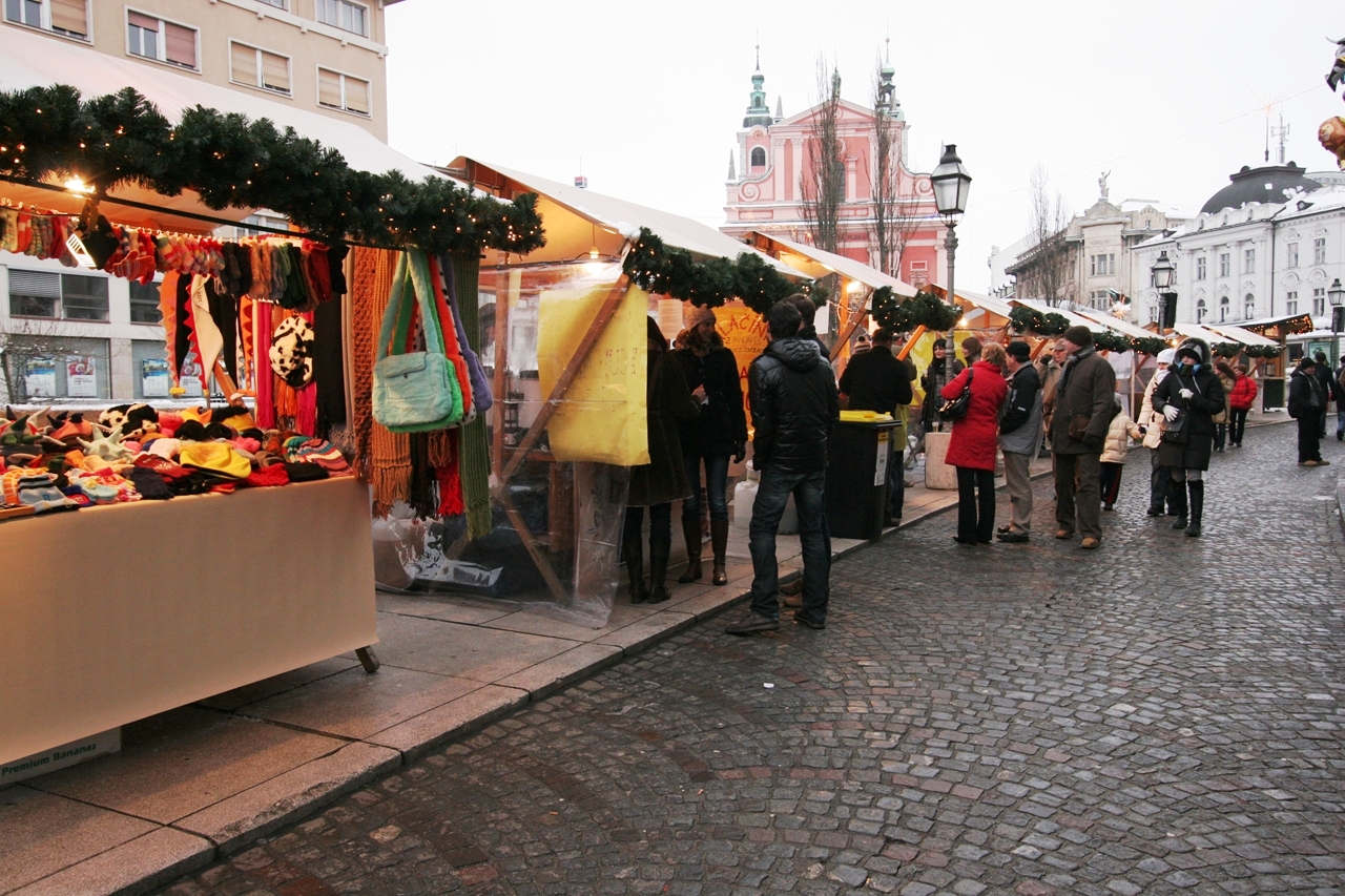 広場周辺から3本橋・リュブリャニツァ川沿いにかけては屋台が一杯