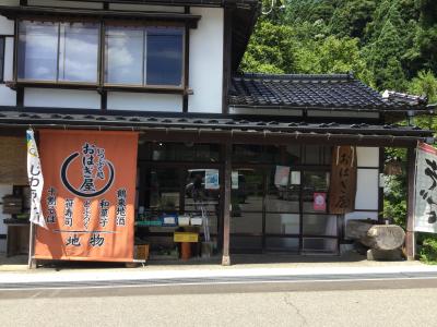白山ひめ神社の入り口駐車場の横にある茶屋。おはぎ屋名が付くだけあって、おはぎが名物。それをソフトクリームに混ぜたものがつぶあんおはぎソフト。あんこともち米がダイレクトに感じることができるもので、暑い時はこれはこれで良い。観光客にはぴったりの話題の一品になりそうである。