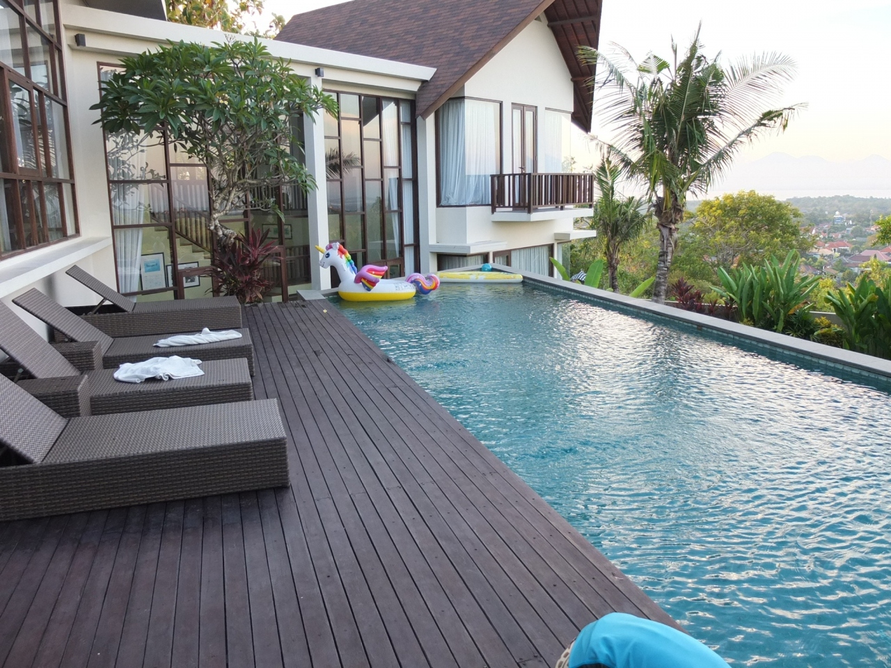 ジンバランの丘の上にある一棟貸しのヴィラ。場所が悪く、運転手も知らない人が多い。その分安いのか朝食付きでかなり安く泊まれる。4ベッドルームなので、最大8名の宿泊なら、みんなで割れるので格安である。施設はリゾートに来た感じがたっぷり味わえる。大きなリビング、お姫様ベッド、プール、バルコニーと最高である。ハウスキーパーには買い物も頼めるし、現地での予約や連絡もお願いできる。。バリでホテルステイよりプライベート感があり、超穴場。