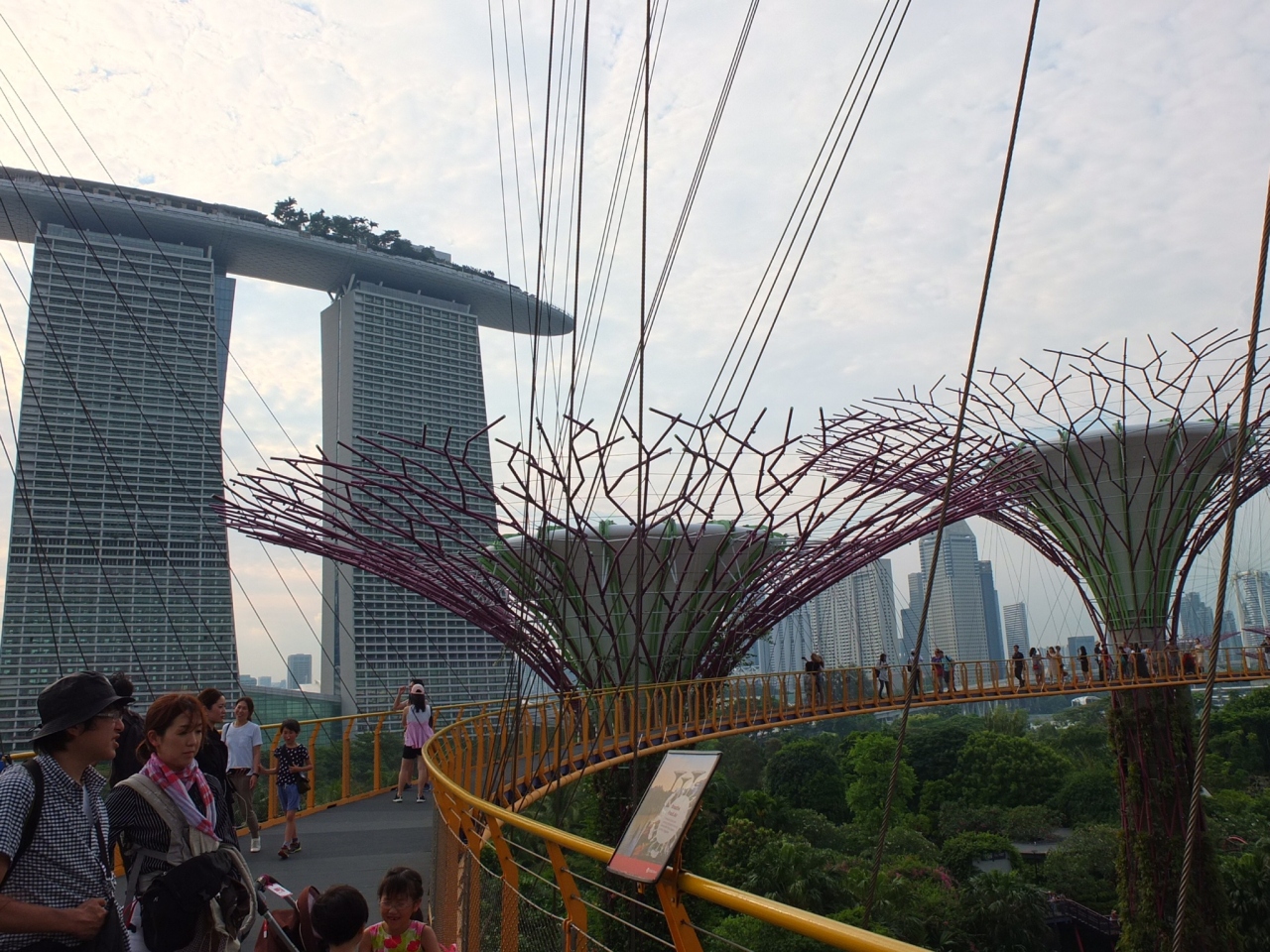 マリーナベイサンズの裏側にある植物庭園。大きなツリーには橋が架かり、有料で入ることができます。夕方には涼しい風が通り、気持ちいいです。景色も海やマリーナベイサンズ、観覧車などが綺麗位に見ることができます。少し混み合うので、そこは覚悟を。