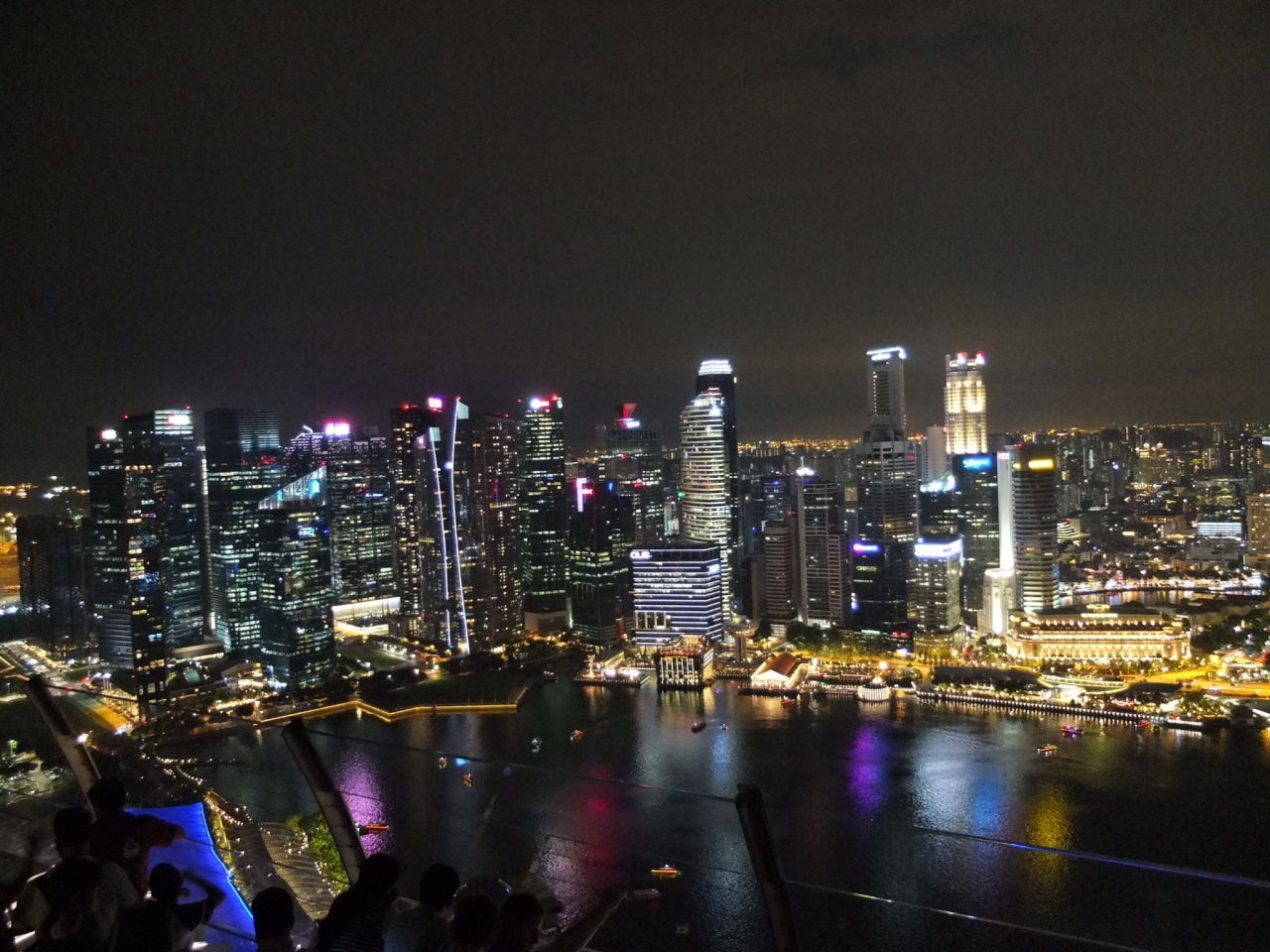 マリーナベイサンズの屋上の船の部分。プールには入れないが、宿泊していなくても展望はできる。ここからはガーデンズバイザベイとマリーナベイサンズのショーが両方見ることができる。ショーの前には非常に混み合うが、うまく場所をキープしましょう。風が気持ち良い場所です。