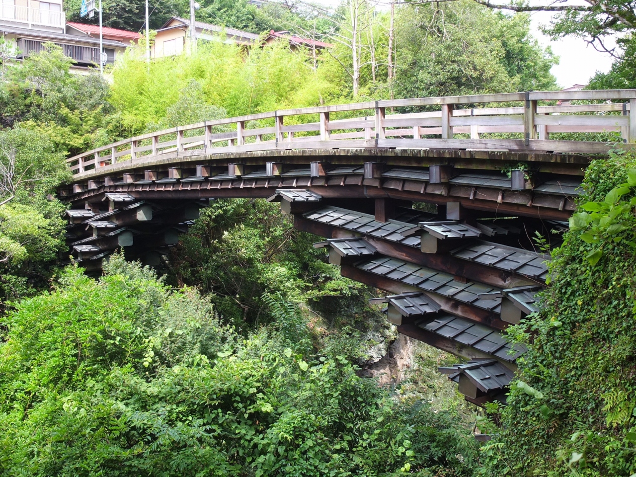 山梨は大月にある日本三大奇橋の一つ。JR中央線の猿橋駅から徒歩で20分と、アクセスはそれほど良くない。車では無料駐車場がある。崖の上に架かる橋で、大きくはないが見応えはある。周囲は飲食店、お土産物屋が少しあるので、休憩、買い物もできる。