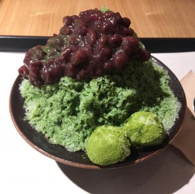 緑茶のかき氷を食べにいきました。サイズは2種類。