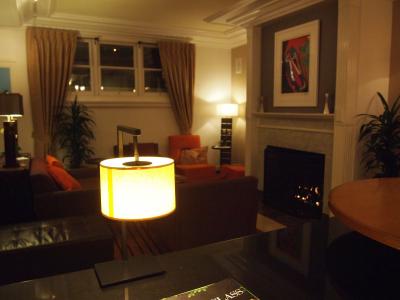 ロビーは暖炉があって暖かみのある雰囲気で、なかなかオシャレ。