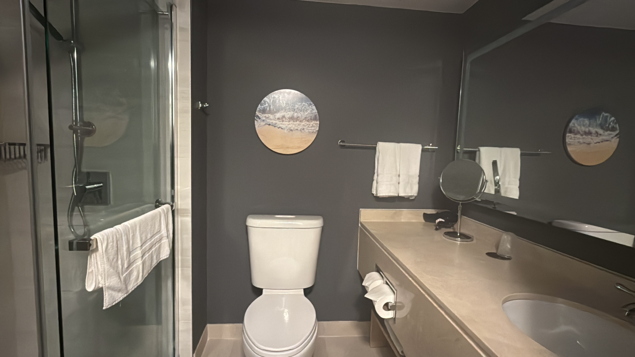 - 広くはないが、寝るには十分。机、椅子あり。ミラーリング機能付きのTVあり。