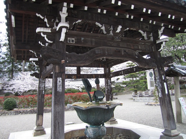 山門をくぐると境内に入りますが(入山料は無料)、平坦な場所にある上、境内を川が流れていることなどもあって、とても解放感があります。小川沿いの桜並木を歩きながら手水を使い、中門をくぐると本堂ですが、石段なども含めたお堂の配置とお堂自体の大きさの調和がとれているのか、正面からみたところが非常に「絵になり」ます。