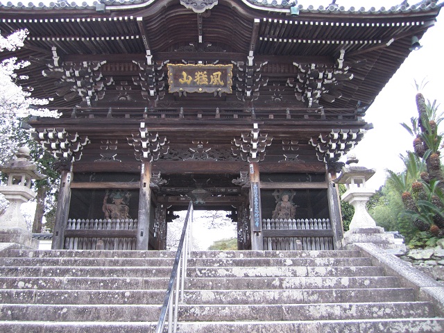 西国三十三カ所第二十九番札所です。最寄りの電車の駅(松尾寺駅)から約3kmの距離ですが、全体的に上り勾配が続き、最後の2kmは完全に山道(舗装はしてますが)なので、足の悪い人は素直にタクシーなどを頼んだ方がよいと思います。とりあえず山門のすぐ下にまで駐車場はありますから(有料、普通自動車で400円程度)、自家用車でお参りするのが一番良いかもしれません。
