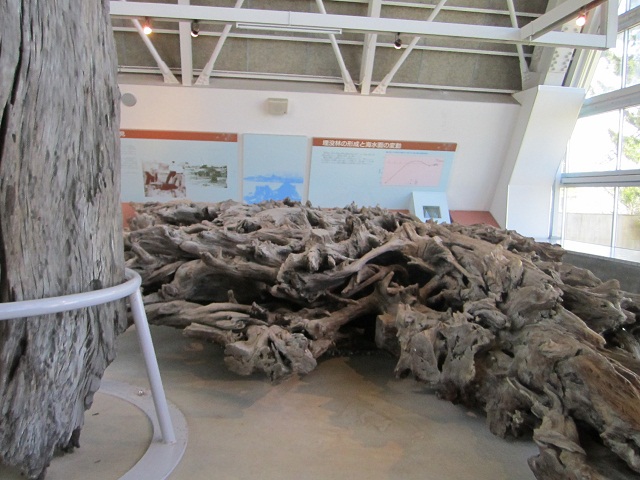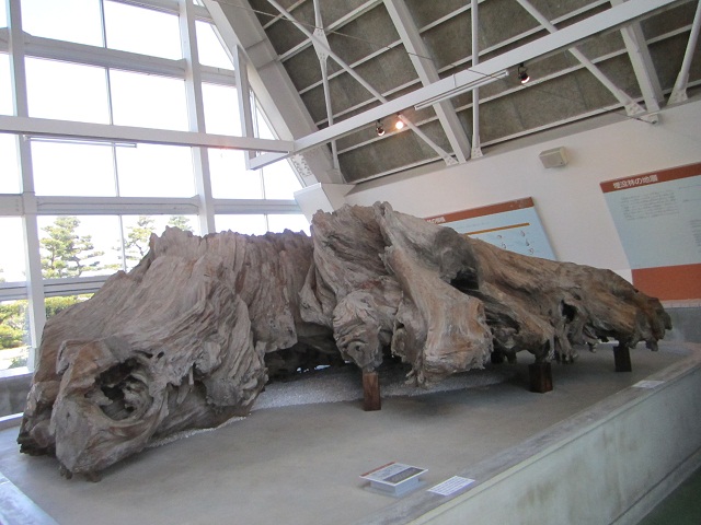 魚津港の工事中に太古の杉林の跡が発見されたことを記念して、博物館ができたそうです。水中展示と乾燥展示の両方があります。本来ならば海水で腐食してしまうところを、真水がたまたま湧いていたため当時のままの姿を残せたんだそうです。