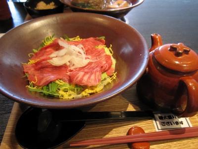 「二代目」は、生肉の上から熱々のだし汁を注ぎかけてしゃぶしゃぶ風にいただくもので、脂が溶け出したお汁が何ともいえない旨みです。