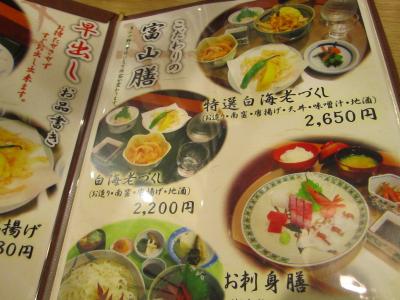 新しい富山駅駅ナカにあるお食事処です。隣には、特定の料理に特化したお店が並んでいますが、同行人と味の好みが合わない、というような場合にこちらのお店を料理するのがおすすめです。割と手広いジャンルを扱っている上(和食ですが)、それぞれの料理のクオリティもそれなりに高いので入店して失敗すると言うことが少ないと思います。テーブル席なのでちょっと落ち着いて料理を味わえるというのもメリットかもしれません。