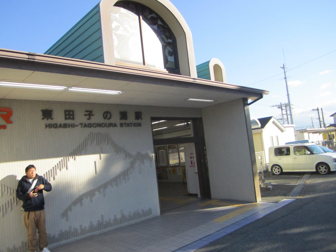 山部赤人の和歌「田子の浦ゆうち出でてみれば真白にぞ 富士の高嶺に雪は降りける」でも知られる田子の浦が付いた駅です。駅舎の壁面にも富士山をモチーフとした装飾がなされています。上り(熱海方)の列車に乗車する際には跨線橋を渡る必要がありますが、エレベータは設置されていません。駅ホームから富士山を眺めようとすると、駅に隣接する民家や電線が邪魔して綺麗に見えませんが、跨線橋の窓からは、そういった余計なものに邪魔されず、富士山を眺めることができます。駅の近くには何もなさそうなので、途中下車にはちょっと勇気がいりますが、天気の良い日にフラっと下車してみるのも悪くないかも知れませんね。