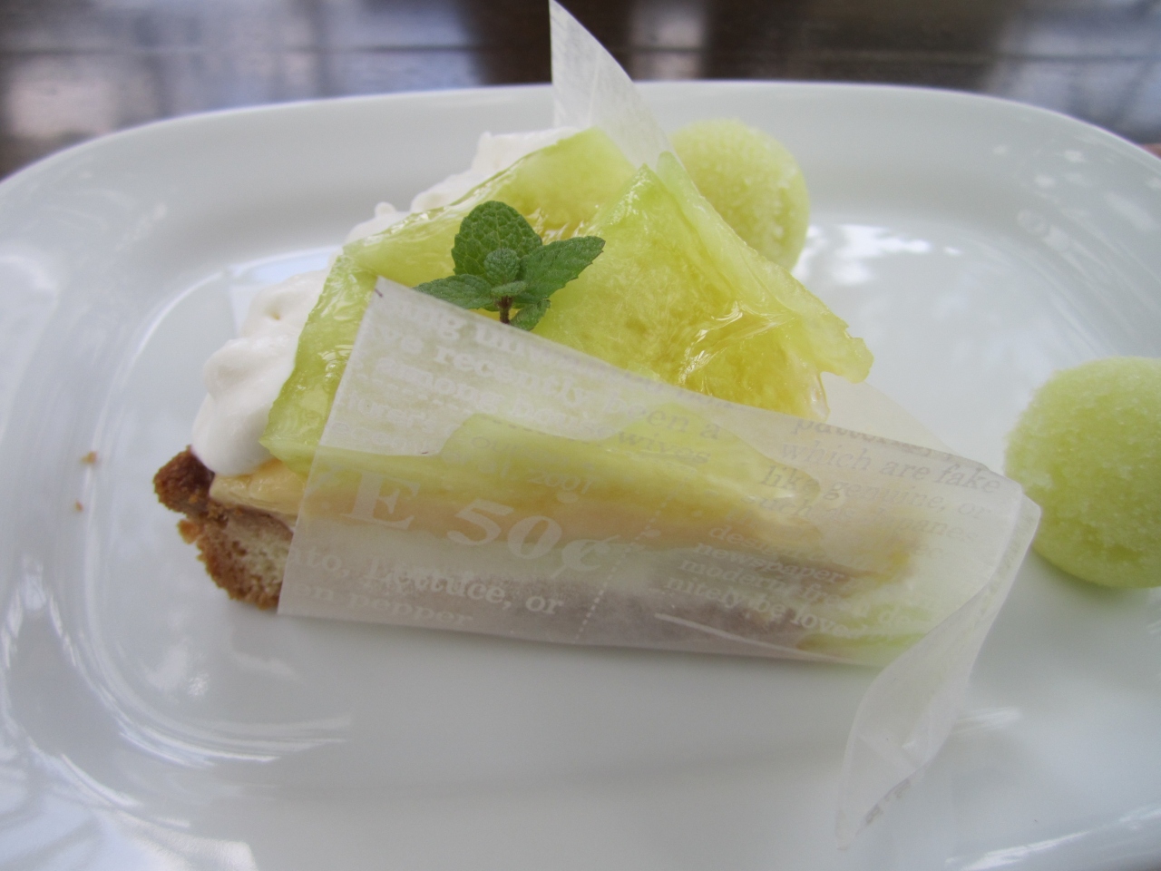 平日はスイーツメニューのみのようですが、土日・祝日はランチメニューも扱っており、地元産の野菜をふんだんに使った料理を頂けます(クラウンメロンは一個の果実に栄養を集中させるため、一つの木についた他の実は間引かれてしまいますが、間引いたメロンがピクルスに使われていたりして、けっこうおいしいです)。