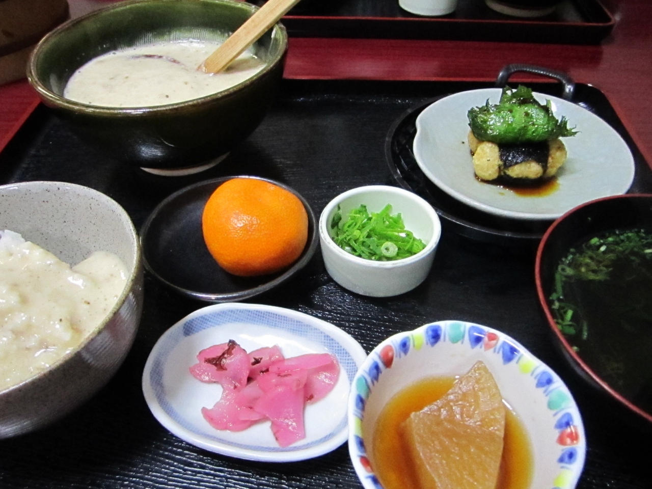 掛川駅から徒歩約10分の所にある、いも汁料理のお店です。二階は大広間があるそうで、大人数での利用にも向いているそうです。こちらのいも汁は自然薯をたっぷり使った粘りけの強いもので、温かい麦飯にたっぷりといも汁を掛けていただく麦とろご飯は何杯でもお代わりしたくなるおいしさです。その他、すり下ろした山芋を油で揚げた「揚げとろ」など、ちょっと風変わりなメニューも頂けます。今回はアルコールは抜きでしたが、お酒ともマッチするようなメニューも取りそろえてあるようです。シンプルですけどおいしい料理を頂きたい方は是非どうぞ。