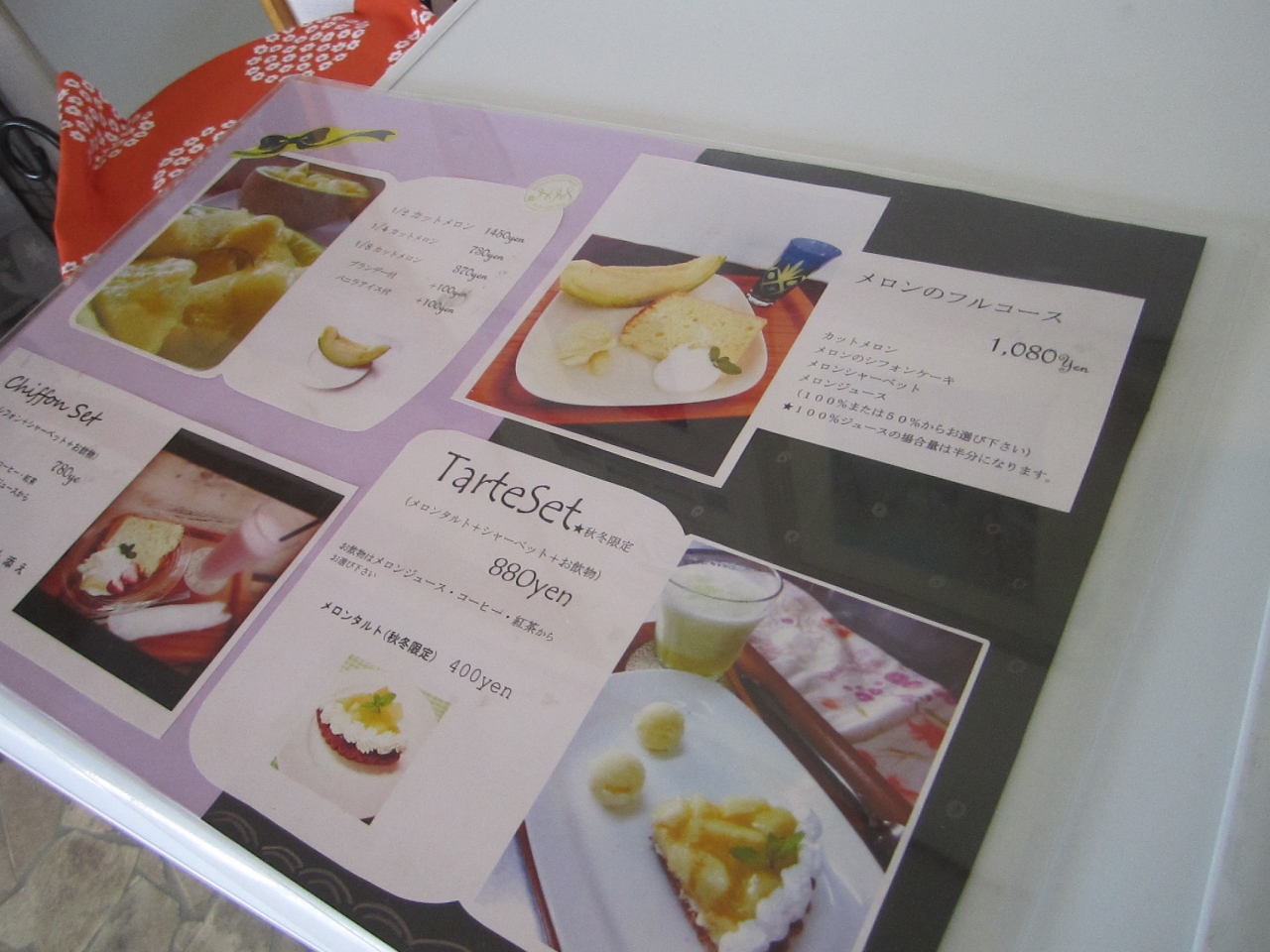 市場に出荷されるメロンは、表面の網目の模様も厳選されているようで、中身は全く劣らないにもかかわらず、出荷できないものも多いそうですが、こちらのカフェでは、そういったメロンを上手に使って、リーズナブルな価格でメロン料理を頂くことができます。