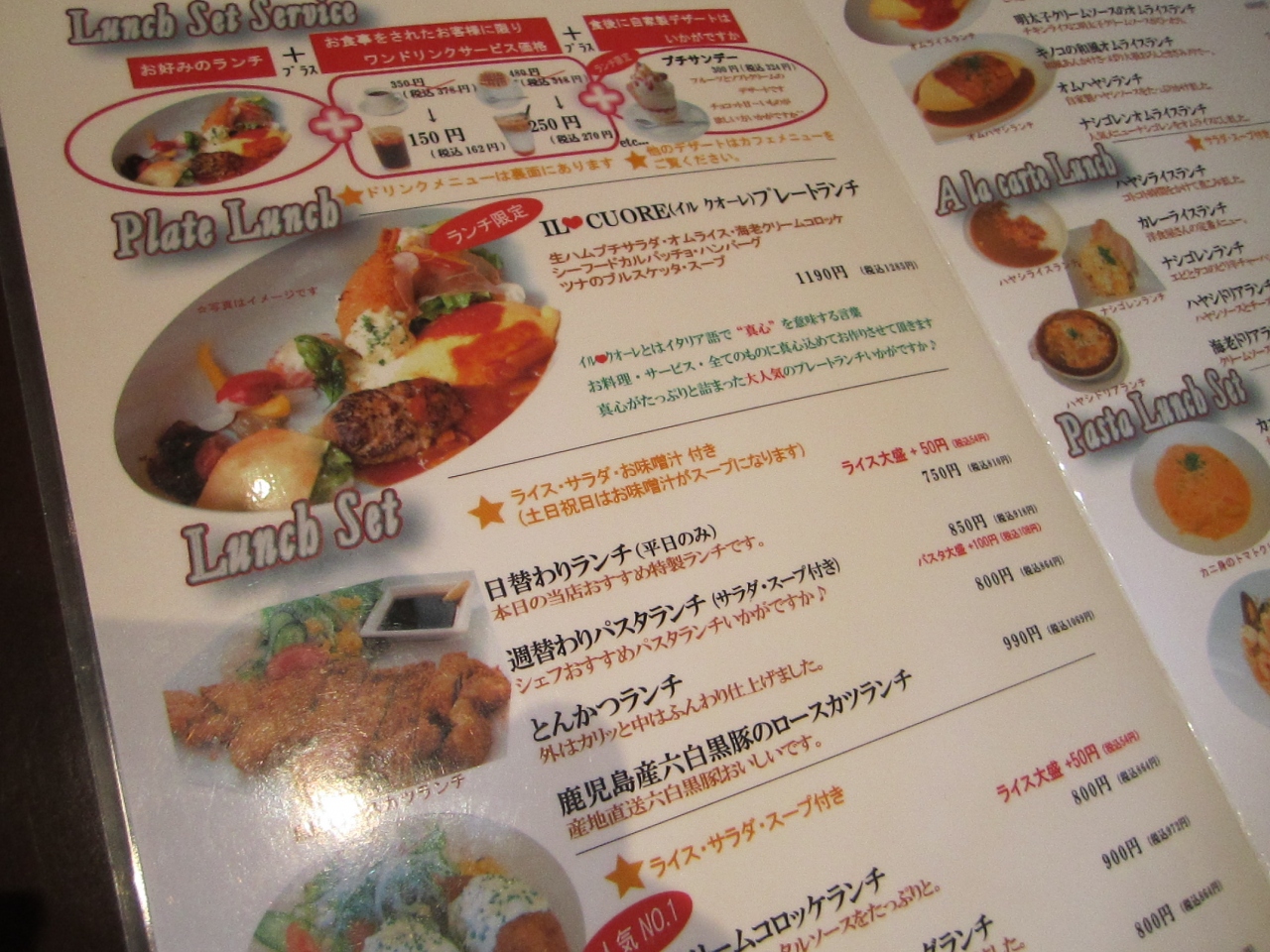石山駅から南に1分のところにあるイタリア料理屋さん。お店の名前「IL CUORE」とはイタリア語で「まごころ」という意味で、その名の通り、丁寧に味付けされた料理をお手軽な値段でいただくことができます。お店は2階建てで1階は禁煙、2階は喫煙可能と分煙もされているので、タバコのにおいが受け付けない人にも安心です。ランチメニューとして提供される、「イルクオーレプレートランチ」はお店で提供されている代表的なメニューを一品ずつ一つのお皿に盛りつけたお得なプレートメニューで、最初にこちらを利用する際には、とりあえず注文してほしいとおもいます。