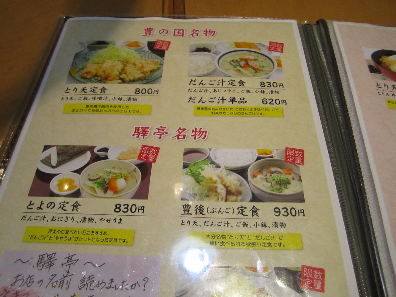 大分駅駅ビル内にある郷土料理のお店です。去年利用したときもそうでしたが、入店するときには満席で入り口付近で待たされますが、比較的回転が早いため、それほど長時間待たされることようです(今年と去年の経験からすると、だいたい5分くらい待てば席が空くみたいです)。今回は「豊後定食」を注文。地元の名物である「とり天」と「だんご汁」が一度に頂けて1000円以内なのでコストパフォーマンスは良い方だと思います。味の方もほどよい味付けで、とっつきやすいかと思います。手軽に郷土料理を召し上がりたい方は是非どうぞ。