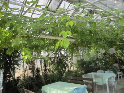 「果物の王様」と呼ばれるクラウンメロンを育てているメロン農家の温室の一部をカフェに改装したものです。冬場に訪れても南国の風情(温度だけでなく、湿度も高くなっている)が感じられます。