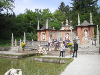 ザルツブルク市街からバスで数十分のところにある、郊外の宮殿で黄色い壁面が印象的です。入園チケットを購入後、庭園をぐるりと巡りますが、至る所に設けられた噴水は、コミカルな物から、少々お下品に思えるものまでいろいろあります。可動式の噴水もあるので、色々飽きさせません。