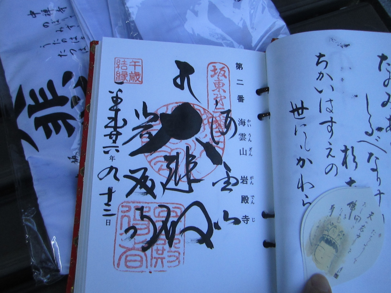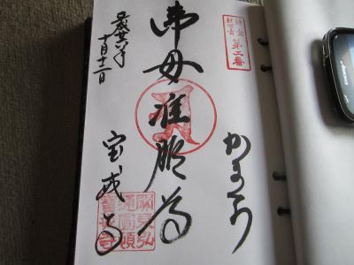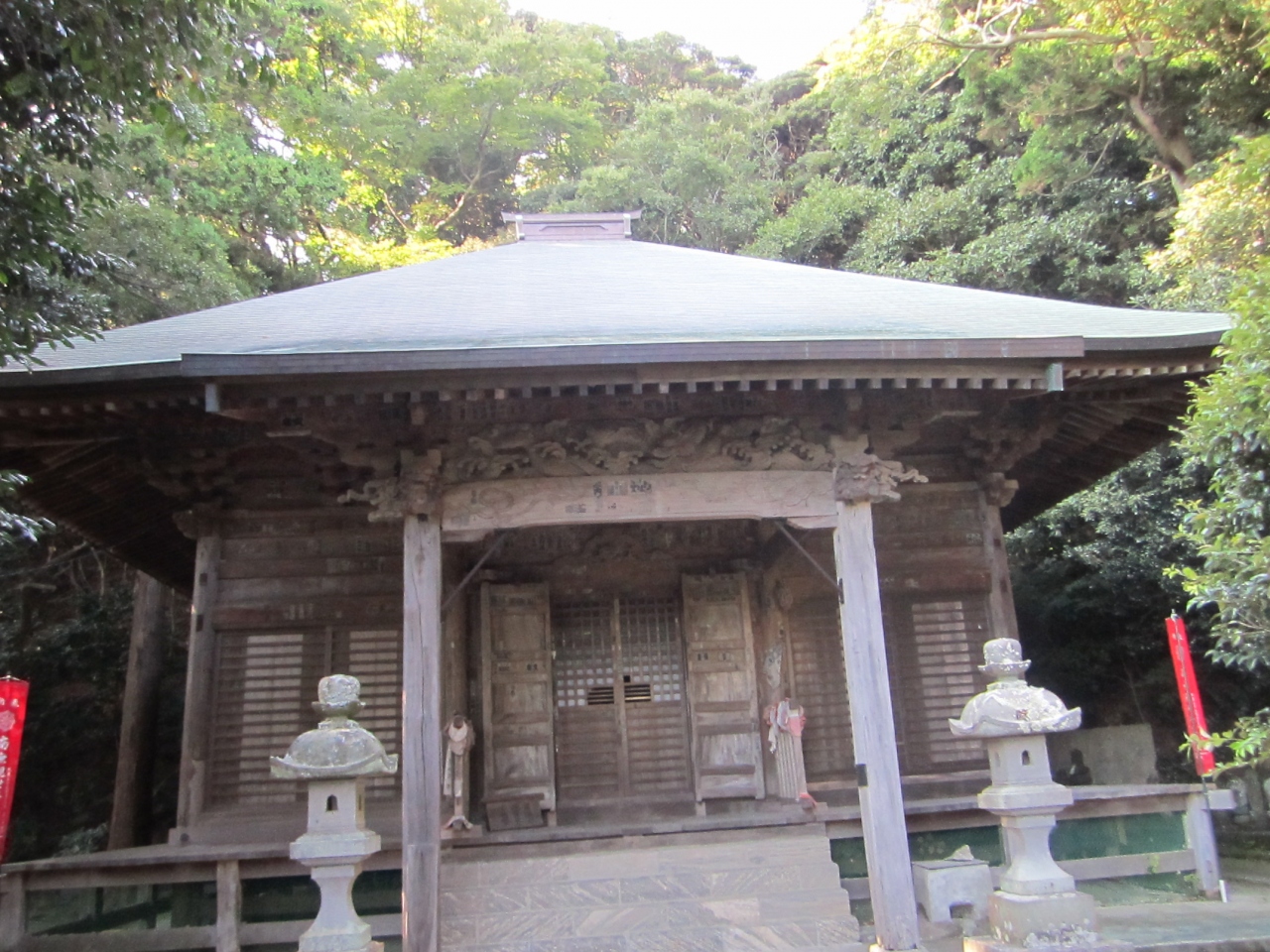 板東三十三カ所第2番札所で、逗子駅から歩いて10分ほどのところにあります。鎌倉市からもそれほど離れているわけでもないのに、鎌倉市内の喧噪とは全く縁がない、ひっそりとした風情です。ただ、静かで落ち着きのある感じ、とは若干異なっており、少し奥まったところにある観音堂などには人があまり訪れていないような印象すらあり、干上がった手水鉢、固く閉ざされたお堂の扉などをみるにつけ、なんか寂れてるなあという感想を抱いてしまいました。納経所を観音堂の横に設けるなどすれば観音堂の管理も行き届きやすいので、参拝する人も増えるとおもうのですが。