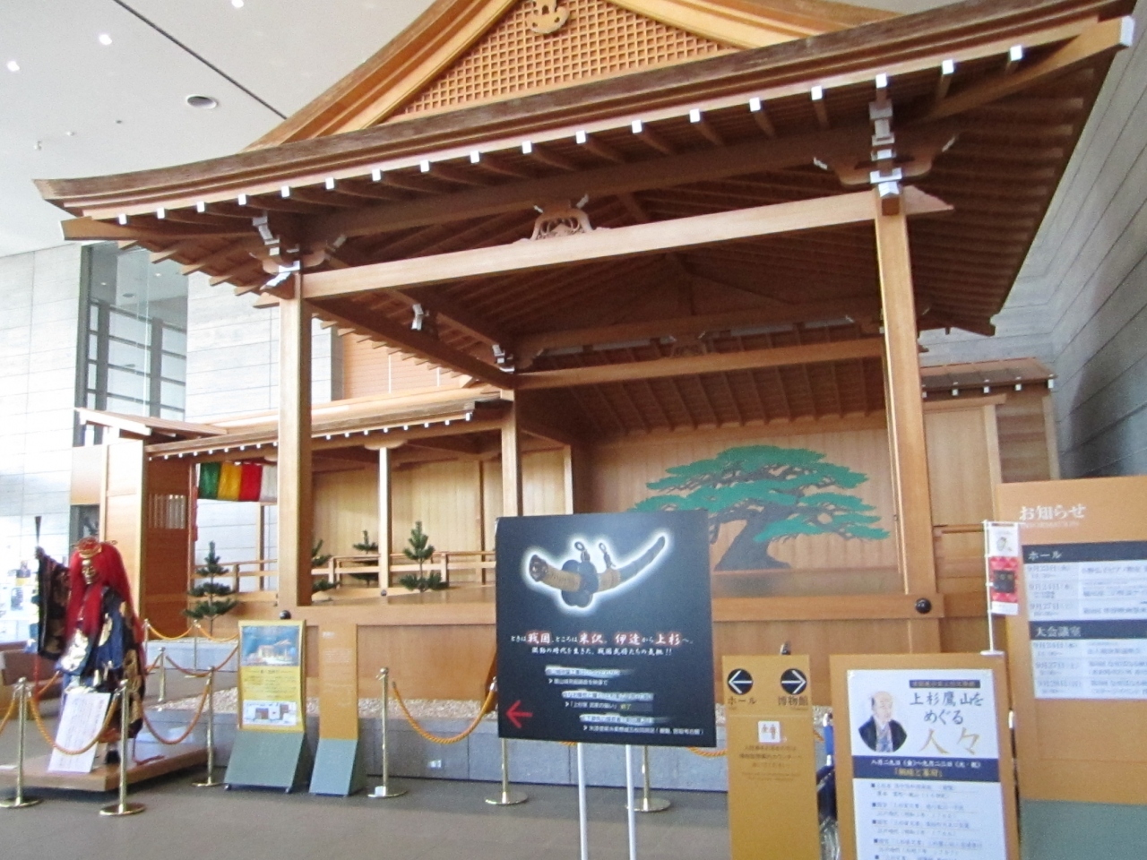上杉神社の南東側、もと米沢城の二の丸辺りに建っている博物館です。洛中洛外図屏風が常設展示されていますが、国宝「上杉本洛中洛外図屏風」(織田信長から上杉謙信に贈られた、狩野永徳作と伝えられるもの)は、一年のうちでも限られた時期にしか公開されておらず、それ以外の時期はレプリカを展示しているようです。洛中洛外図屏風のコーナーでは、3D技術を利用したアニメーションを見ることができますが、立体的に見せようとする映像はちょっと目に悪い(というか、かるく酔う)ような気がするので、こちらは好き好きで楽しんで下さい。