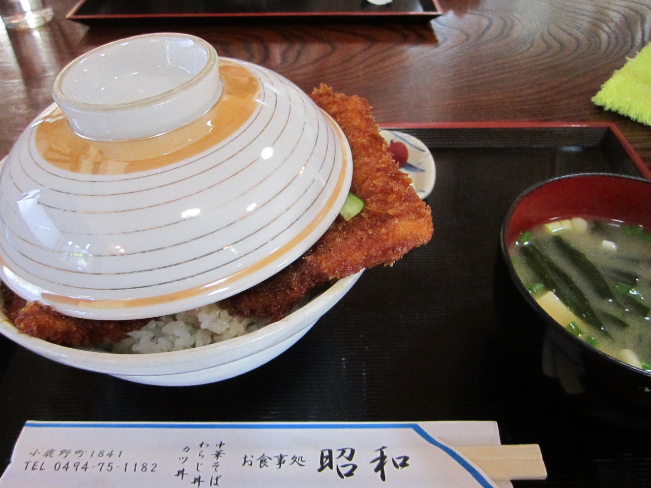 小鹿野町役場近くにある、その名の通り昭和っぽいたたずまいを残した食堂です。ご亭主と奥さんの二人で切り盛りしてるようです。秩父名物の「わらじカツ丼」をリーズナブルなお値段でいただけます。ボリュームもたっぷりです。店内はこのお店にわざわざ遠くから訪れたライダーの人達の色紙がたくさん貼られており、人気店であることをそれとなく感じさせます。小鹿野町散策にふらっと立ち寄ってみるのも良いかもしれません。