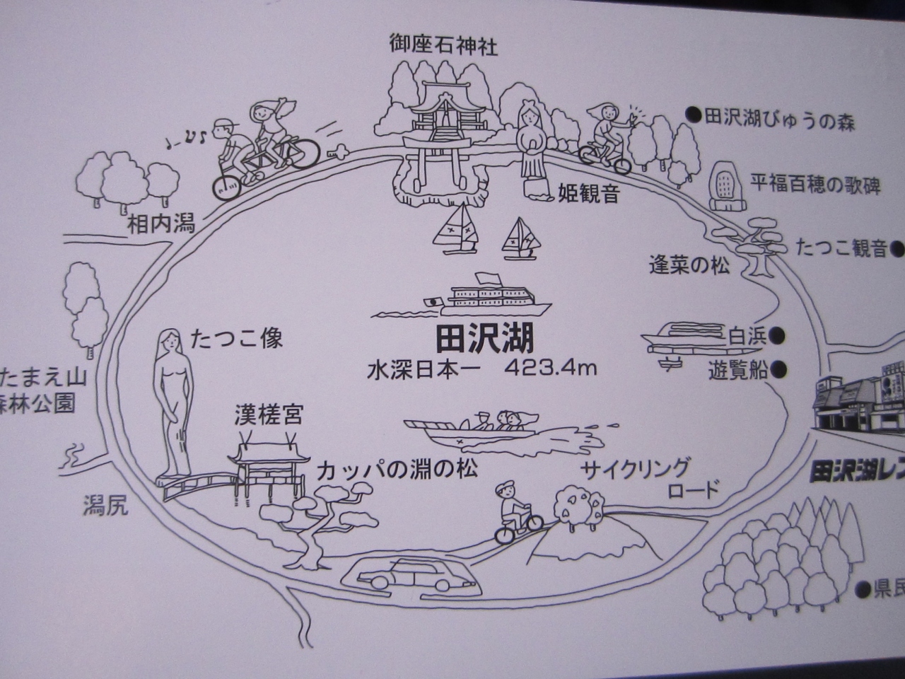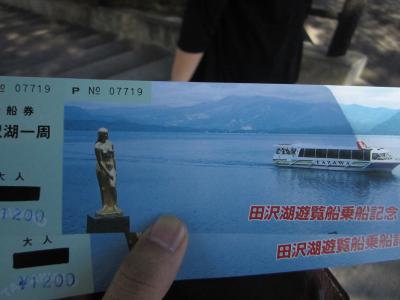 田沢湖を反時計回りに一周してくる観光遊覧船です。だいたい50人くらいは乗船できる船なので、揺れも少なく船に弱い人でも大丈夫と思います。船着き場を出発してから、御座石神社、たつこ像の辺りで一旦停船、またもとの船着き場に戻ってくるというルートですが、乗船の間中、観光案内の音声が流れているので(録音ですが)、景色の良さに加えて、田沢湖とその周囲についていろいろ学ぶことができ、40分が非常に短く感じることができました。おとな1200円で乗船できるので、コストパフォーマンスもかなり良いと思います。晴れている日は船に乗ってみることを是非お奨めします。