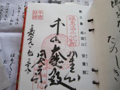 坂東・鎌倉三十三観音の千手観音菩薩像は、本尊阿弥陀如来像の後ろに祀られており、阿弥陀様が金ピカなので、よく見ないとそれとわかりません。元は田代寺にあったもので、鎌倉時代の武将田代信綱の守り本尊であった千手観音像が胎内に納められているそうです。御詠歌(枯木にも 花咲くちかひ 田代寺 世をのぶつなの あとぞ久しき)では、もろに「田代寺」と言われてますね。- 旅行時期