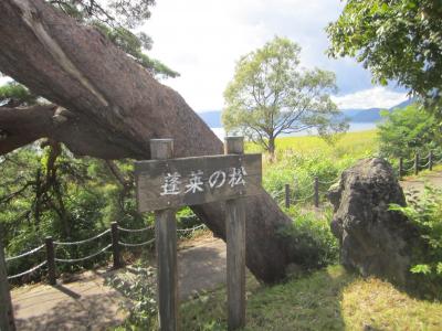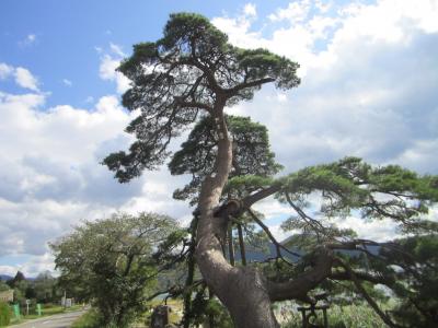 田沢湖湖畔に自生している松の巨木で、伝説上の蓬莱山に生えている松に似かよっているため、「蓬莱の松」というおめでたい名前が付いたそうです(盆栽でよくありがちな形のが「蓬莱山の松」のイメージにもっとも近いかと)。ただ、残念なことに以前の大風によって枝が折れてしまったそうで