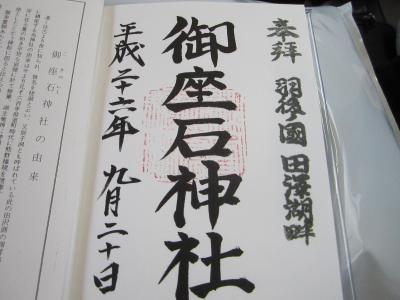佐竹の殿様が腰掛けた岩が湖の沖合にあるため、「御座」の「石」の神社という名前を頂いているようですが(本殿に張られた幕にも佐竹家の家紋が染ありました)、神社の本殿裏手には、田沢湖の主である、辰子さまが飲んで美人になったと言われる泉があるそうで、知る人ぞ知るパワースポットになっているようです。あんまり神社の方ではアピールしているようには見えなかったのですが、やっぱり口コミで広まるものなのでしょうか?