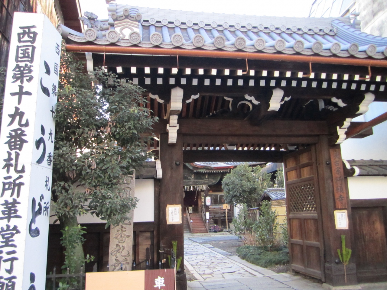 西国三十三カ所第十九番札所で、京都御所のすぐ近くに位置してますが、大通りから少し入ったところにあるので場所の把握は大事です(京都は古い寺社が多いので、世界遺産クラスでないと道路標識で案内してくれない)。お寺自体は山門入った正面に立派な本堂があり、境内脇には小さなお堂(こちらも都七福神巡りの一つです)がありますが、町中にあるだけあって大伽藍というわけにはいきません。