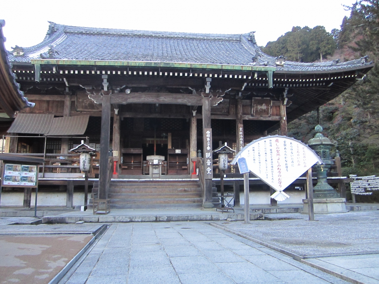 西国三十三カ所第十二番札所で、滋賀県と京都府の境目である岩間山の中腹にあります。かなり急勾配の上り坂を上っていく必要がありますが、境内のすぐ近くまで舗装された道路が通じているので、自動車でお参りする分にはあまり影響はないかと思います。