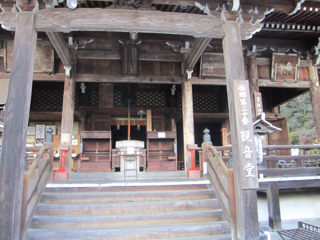 西国三十三カ所第十六番札所ですが、世界遺産として多くの観光客が訪れる場所でもあります。札所巡りにあたり、納経所は本殿(「清水の舞台」があるところです)の回廊をぐるりと回って、入り口とは逆側のところにあります。山門、三重塔、本殿、音羽の滝の順番で回るのが普通だと思いますが、滝の方から歩いてみるのも季節によっては良いかもしれません。ちなみに本堂から先は拝観料300円。