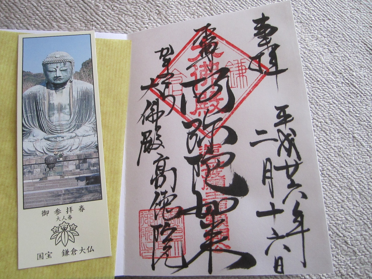 金銅製の大仏が露天で座っている姿は非常に有名だとは思いますが、中門が常に閉じられているため、山門をくぐったところからは大仏の姿は見えず、中門脇を通り抜けて参道正面に回り込むと、大きな大仏の姿が目の前に現れるといった一種の演出が見られます。おそらく、中門開けていると正面から大仏さんの姿が筒抜け、という理由から中門閉じているんだと思うのですが、視覚上の効果は抜群でした。
