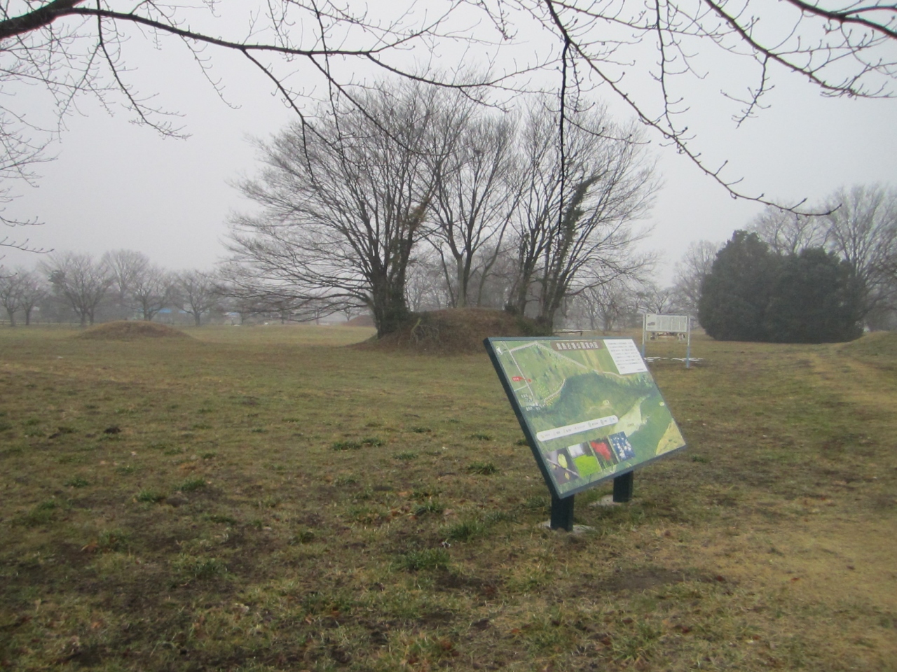 川沿いの田んぼ道を走っていると、突如として芝生と地面の隆起が目に入ってくるので、さながらゴルフ場の風情です。下草はきれいに刈り取られているので古墳の近くまで近づくのは容易ですが、古墳本体については手入れをしないことになっているのか、葺石を覆う土砂にさらに樹木が根を張っており、非常に奇妙な光景になっています。公園のような形で整備されている敷地内には56基の古墳が存在していますが、案内図の分布図を見る限りにおいては、少し離れたところにある、田んぼの中の土山(のようなもの)も古墳らしく、地元の農家の人もいろいろ気を遣うこともあるのかなあ、と思ったりします。