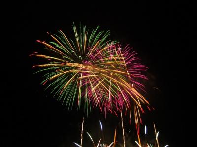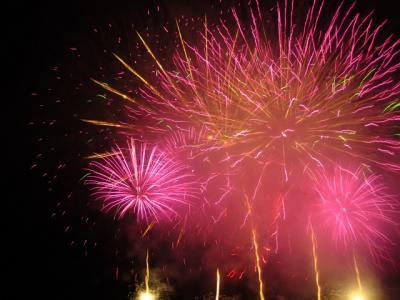 毎年9月の最初に諏訪湖湖上で行われる花火大会です。「競技大会」という名前の通り、全国の花火師(煙火師)が各自考えたテーマに即したプログラムで音楽に合わせて花火を打ち上げるものです。花火の競技性というのは一見わかりにくいのですが、単に花火をたくさん打ち上げるというのではどうもだめみたいで、仕掛けの奇抜さとか技巧の複雑さといった点が採点されるようです。