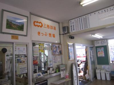 鉄筋3階建てのしっかりした駅ビルですが、駅設備としては1階入ってすぐの有人式の切符売り場と3階のプラットフォームのみからなるシンプルな作りの駅です。切符売り場は地元の人に委託されているようで、わりとノンビリした雰囲気です。どちらかというと駅の売店のおばちゃんがついでに乗車券その他を扱ってるといった方が正しいです(売店の方も、上海万博2009のポスターがいまだに貼ってあったりと、微妙な雰囲気がそこはかとなく漂ってますが)。今回は多少なりとでも三陸鉄道に手数料が入ってくれると良いなー、と思い、小本−宮古−腹帯の区間について補充券で発券してもらいました。地紋には「さんりくてつどう」としっかり書いてありました(おー)。