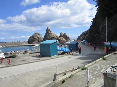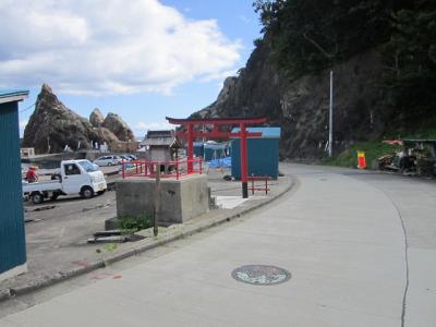 久慈駅から車で海岸沿いに約30分、集落側の堤防を抜けると、「あまちゃん」の舞台が目の前に広がります。漁港の施設を左手に見ながら歩いて行くと、「あまちゃん」のオープニングで出てきた赤い鳥居や夫婦岩、そして白い灯台が目の前に広がります。