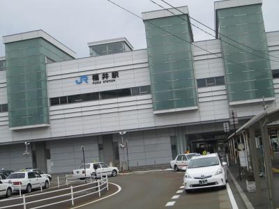 北陸新幹線が金沢以西に延長されることを見越して高架化が完了しており、在来線ホームはスタイリッシュな感じになっていますが、改札は自動改札が依然として導入されておらず、駅員さんに切符を見せて改札を出入りします。駅舎の高架化に伴い、高架下部分には各種商業施設が入居しているほか、駅前広場の再開発が進んでおり、2年前から毎年この時期に福井駅を利用していますが、古いビルが取り壊され更地がどんどん広がっている印象です。ちょうど今年の福井滞在時、NHKニュースで福井駅西口再開発ビルにJAXAが入居して宇宙関係の展示をする、云々の話がありました。何年先になるかはわかりませんが、もっと快適な空間になるといいですね。