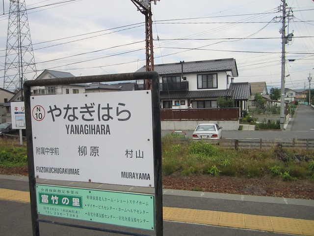 長電バス柳原駅から歩いて10分ほどの所にあります。踏切が近くにあるためかろうじて駅の存在に気づきますが、道路に駅への順路を示す標識の類もないため、事前に駅の場所を地図上で確認しておかないと道に迷うかも知れません。