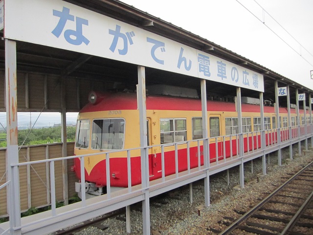 駅舎とは反対側には、「ながでん電車の広場」と称して朱色とオレンジのレトロな電車が保存、展示されています。ちゃんと屋根で覆ってあるので保存状態は非常に良いです。今年は中まで入りませんでしたが、去年訪れた際には扉を手で開けて入ることができました(入れない箇所もあります)。座席はさすがにスプリングがへたっていてギシギシ鳴っていました。- 旅行時期